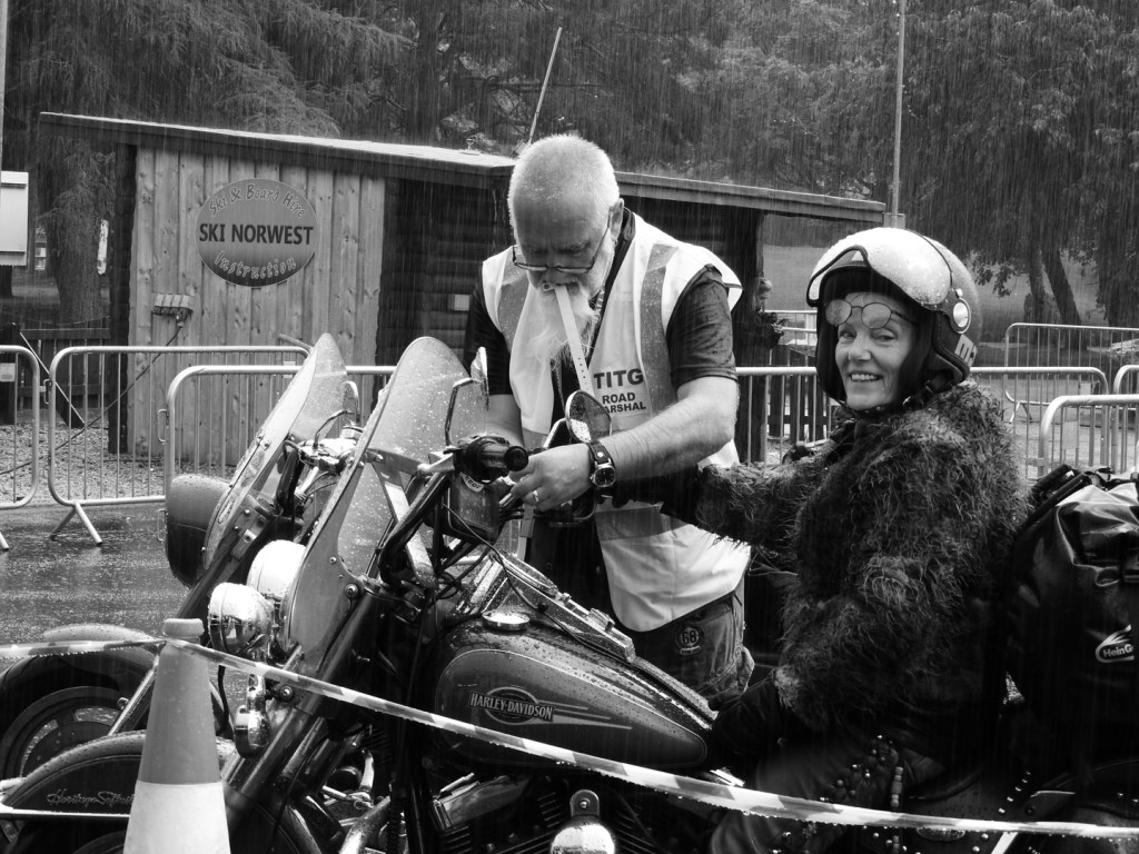 The Three thousand sell out three day rally is in its 24th year. The mass ride out on the Saturday gets a great deal of participants on the pavement, in their gardens along the route, in the fields, etc. Families waving, smiling children. It is a happy day for many. The Sunday ride up the Cairngorm mountain is an emotional one for me, it brings back many happy memories of my skiing days. As well as a very sad occasion when I lost a friend on the mountain. The great thing about being able to sit on the back of the bike is you can sit and take in the view, which no one can deny on these routes is a beautiful one. And you can relax and think of all that has gone by over the years. The Sunday afternoon at the rally site there were charity rides. Where volunteers were giving rides around the site on their Harley-Davidson for a donation to charity. In the evenings there was an absolutely amazing choice of live music to choose from.
