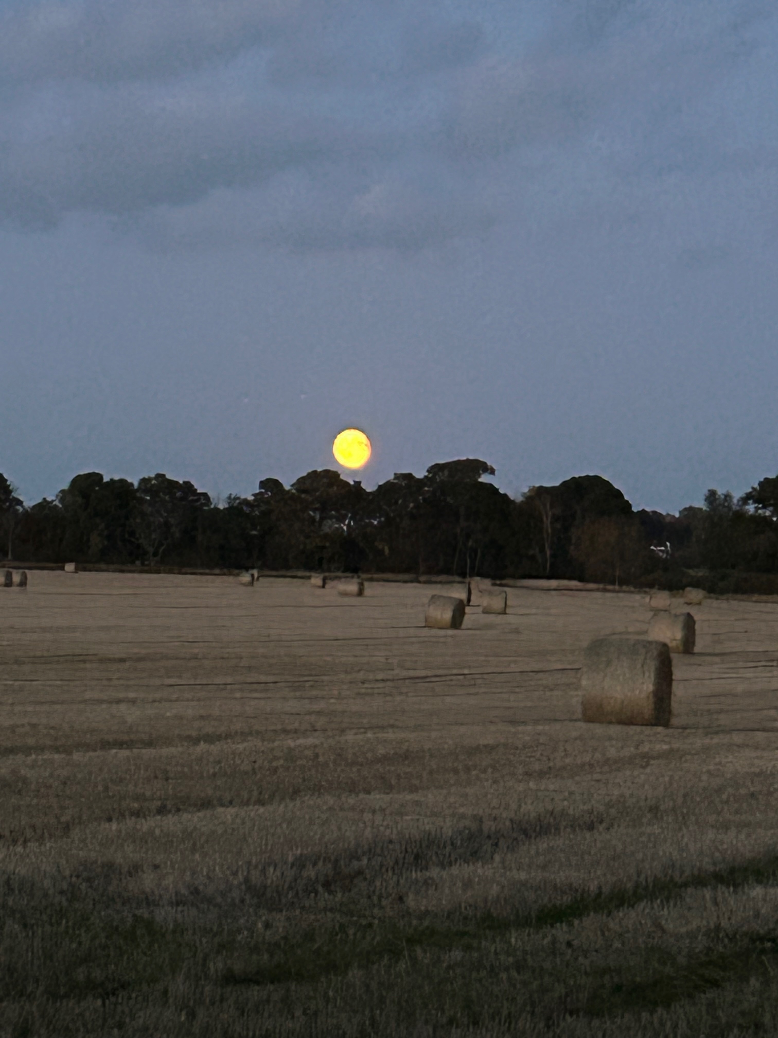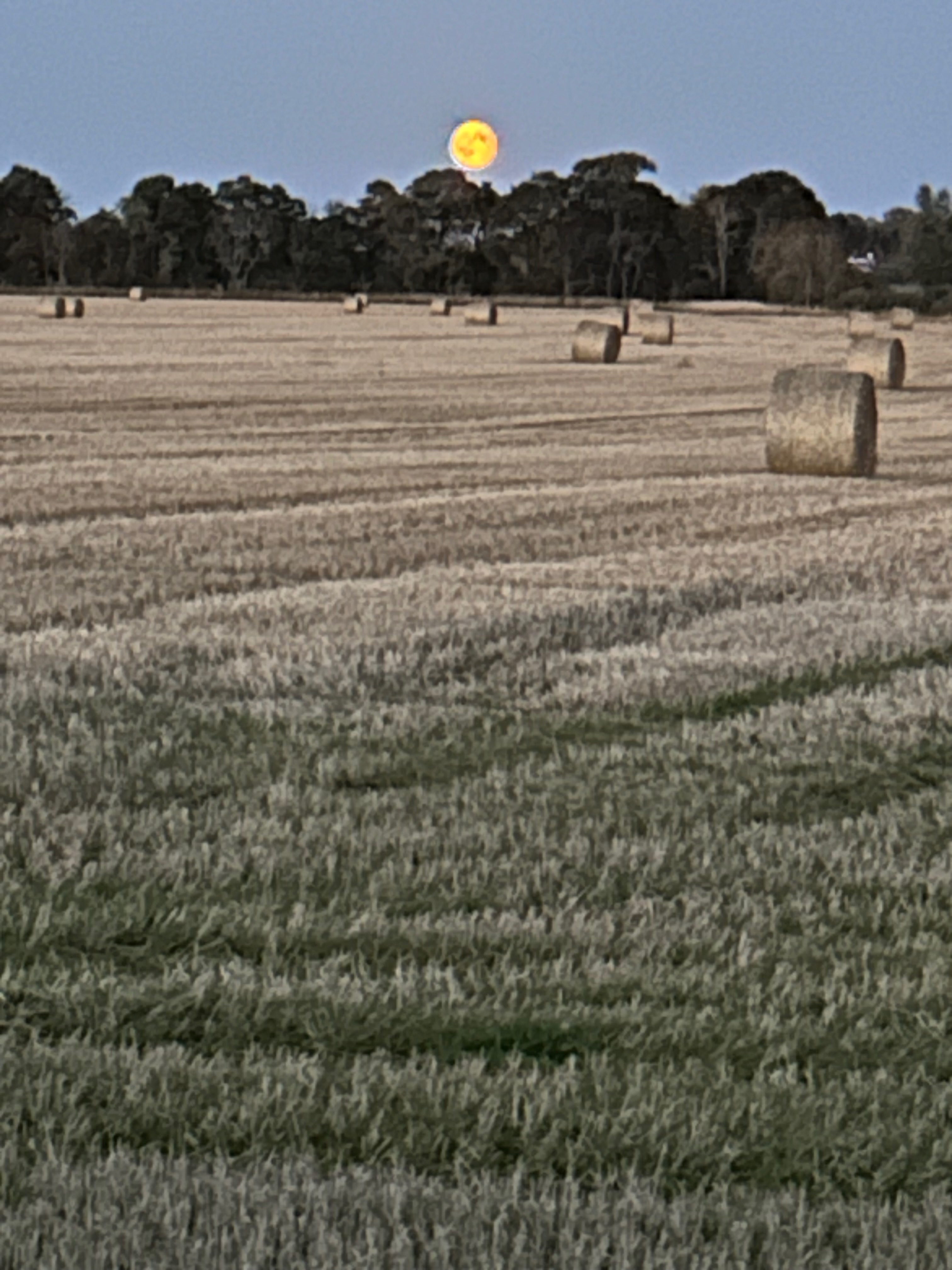The above photo of this beautiful harvest moon was taken in our back field at 11pm, just before going to bed. This is the view I have every day from my bedroom window, how lucky am I.