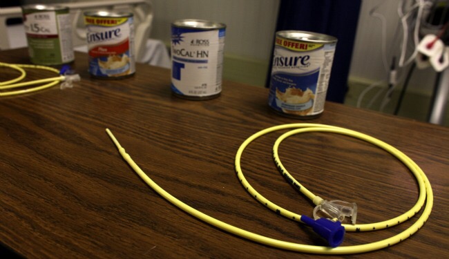 Steve and I sat together on the sofa like a couple of school kids niavely watching in anticipation. Gwen, the nurse specialist methodically explained the whole process. She was very thorough and hands on. Carefully telling us how to set up the pump, what tube to use, checking the ph level, flushing the feed tube. After an hour or so of first time training Gwen left. She gave us an abundance of literature to read through. We both felt fairly confident in using the pump and setting up the feed.