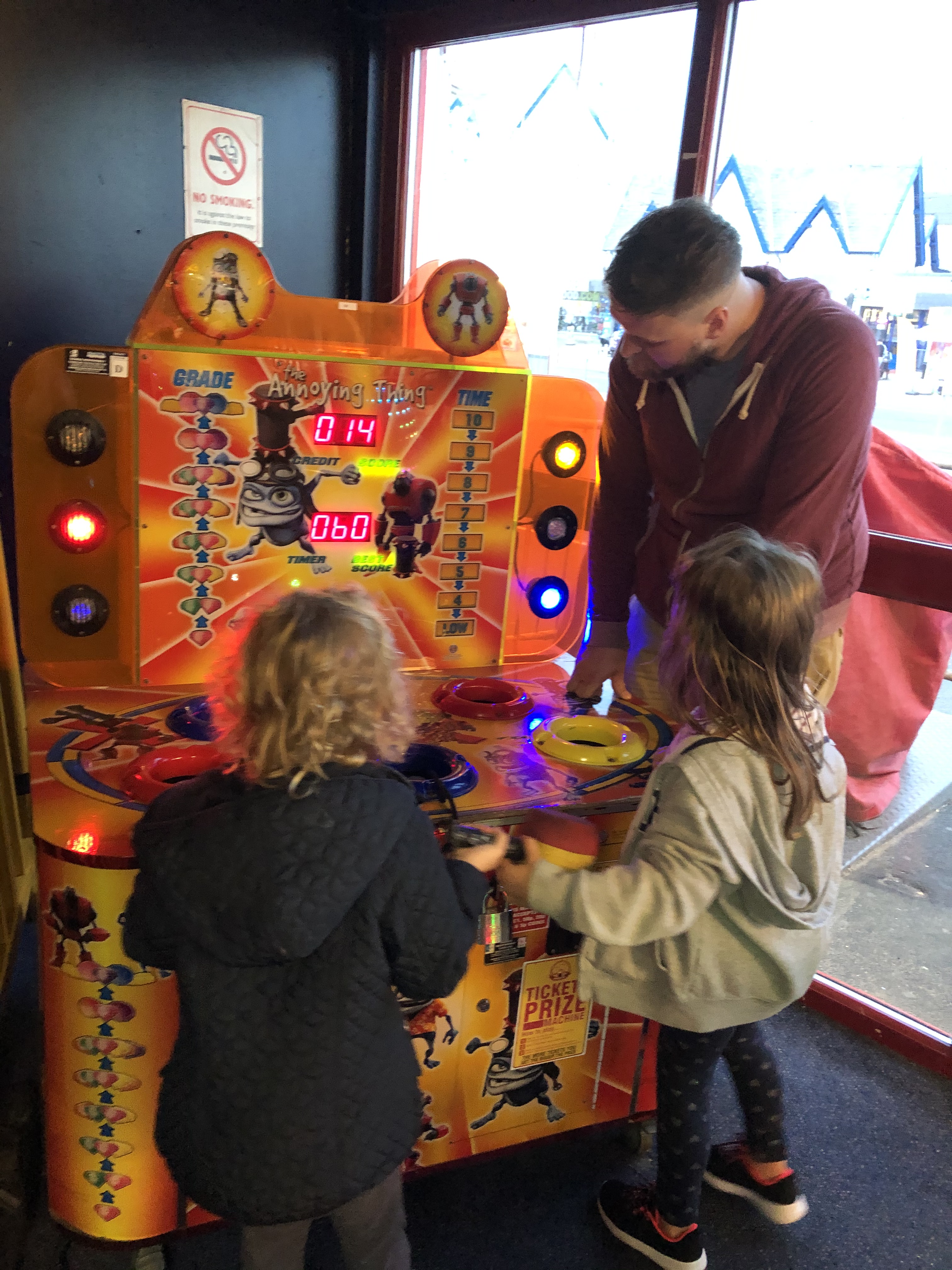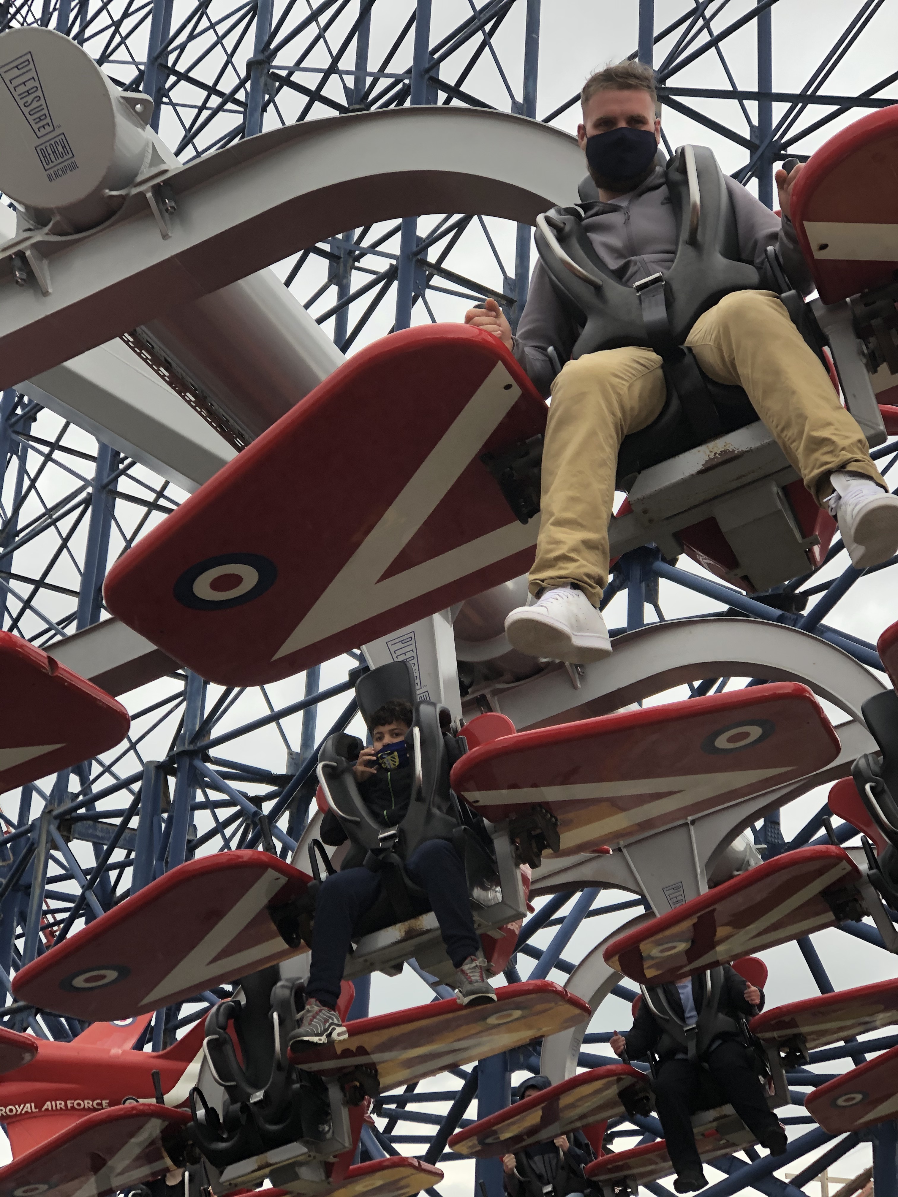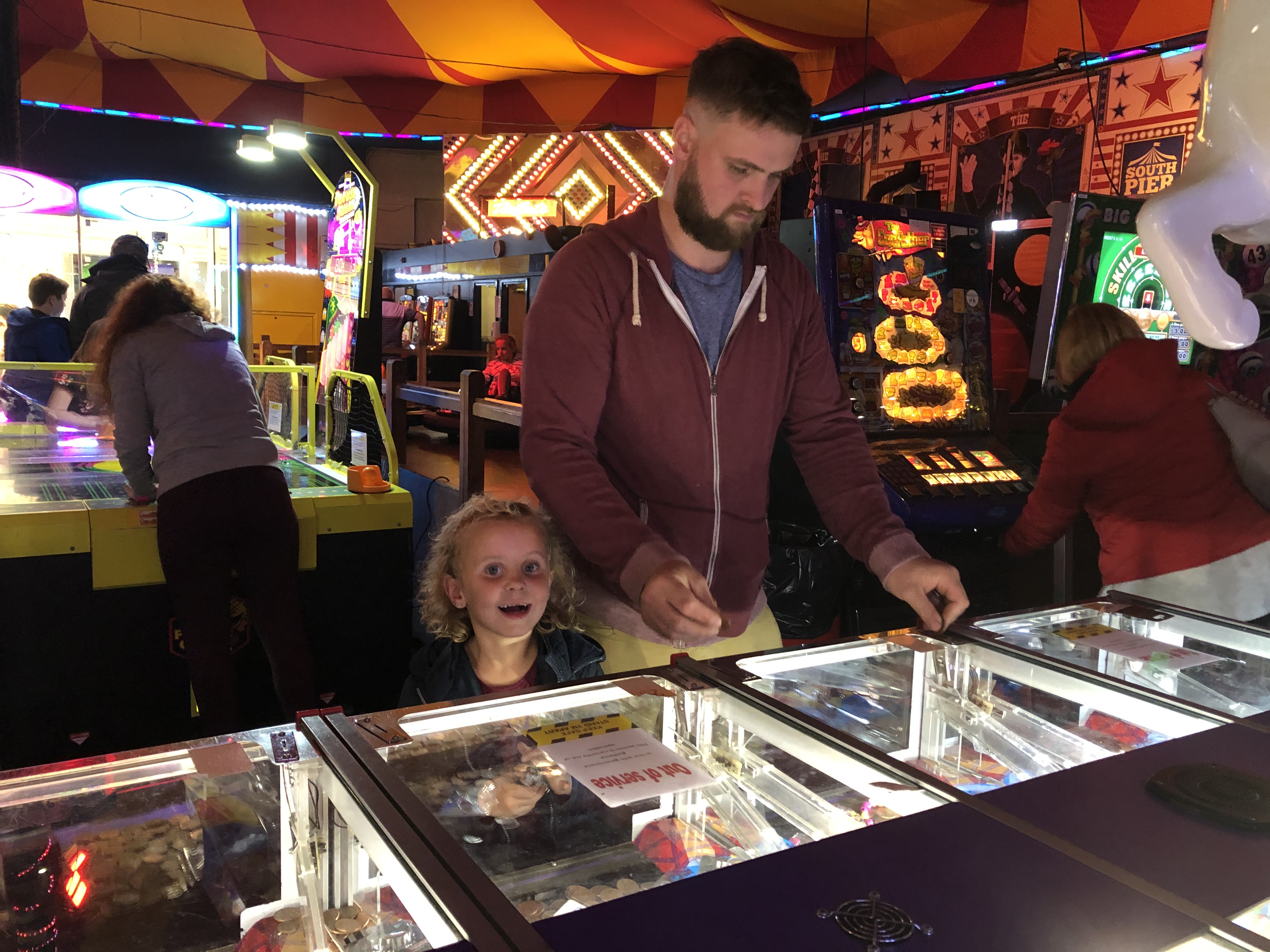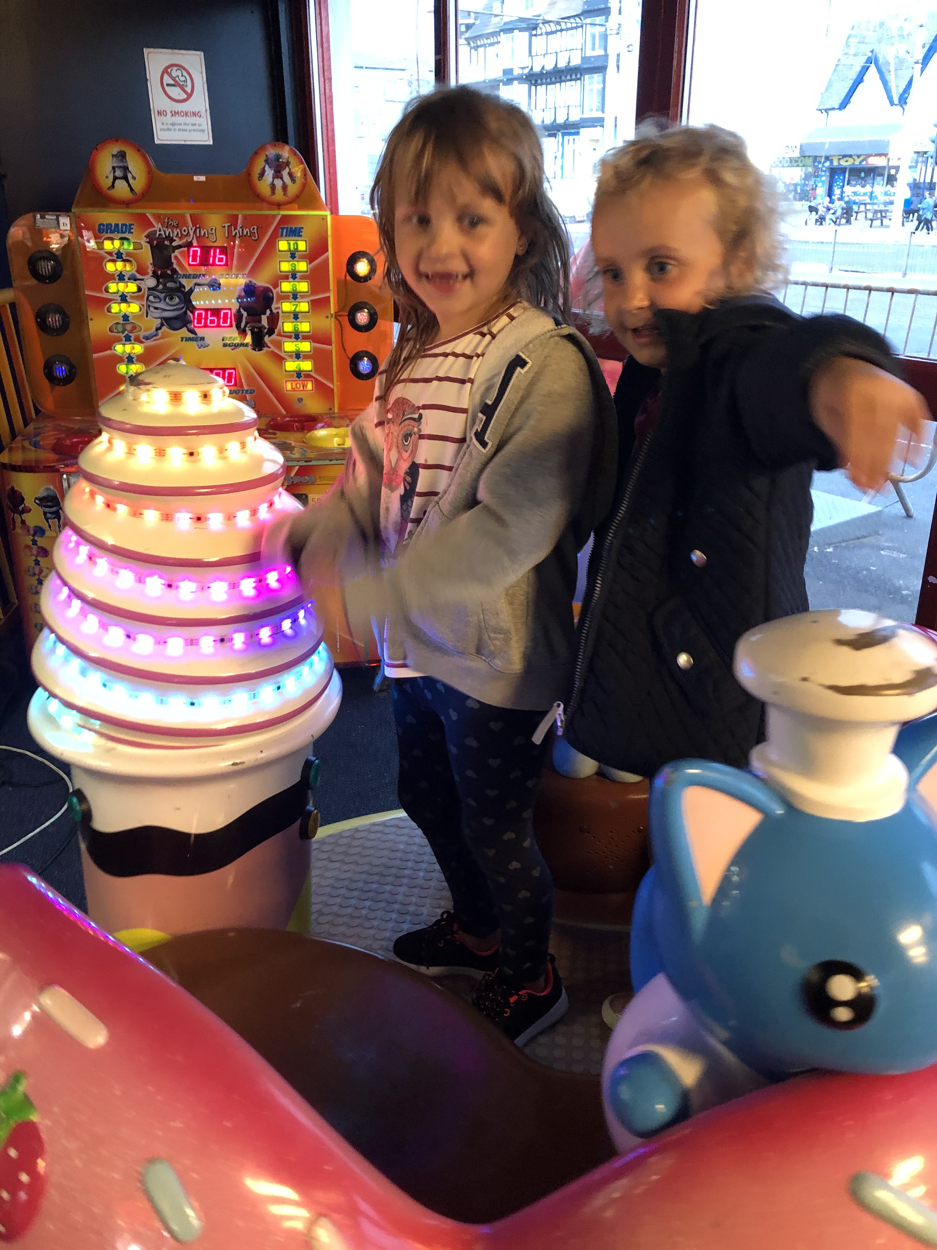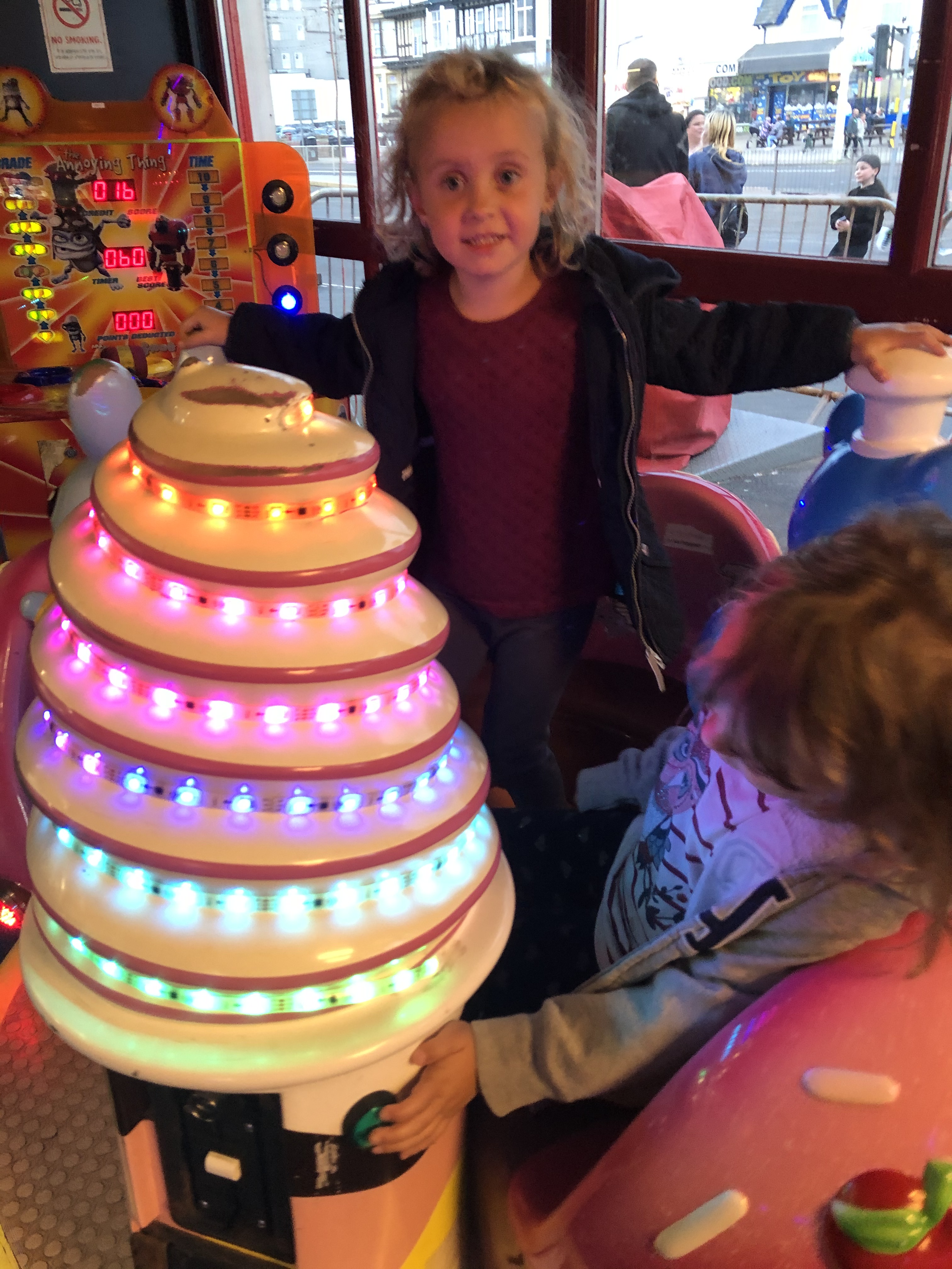 We went into Blackpool for the evening after our meal, we parked on the sea front. Made our way to The South Pier. On the pier there are plenty of rides to keep us amused. The girls eyes were like saucers, their heads bobbed from side to side taking in all they could see. The bright flashing lights, beeping sounds and clunking of coins rattling was their first sight and sounds of the pier. Lots of 2 penny machines to play, big glass boxes with cuddly toys to try and grab to win. We played some games, had amazing fun came out the other side to a funfair on the pier. Stuart, Alexandra and Grace had great fun on the rides. This was a taster for the big rides next day.