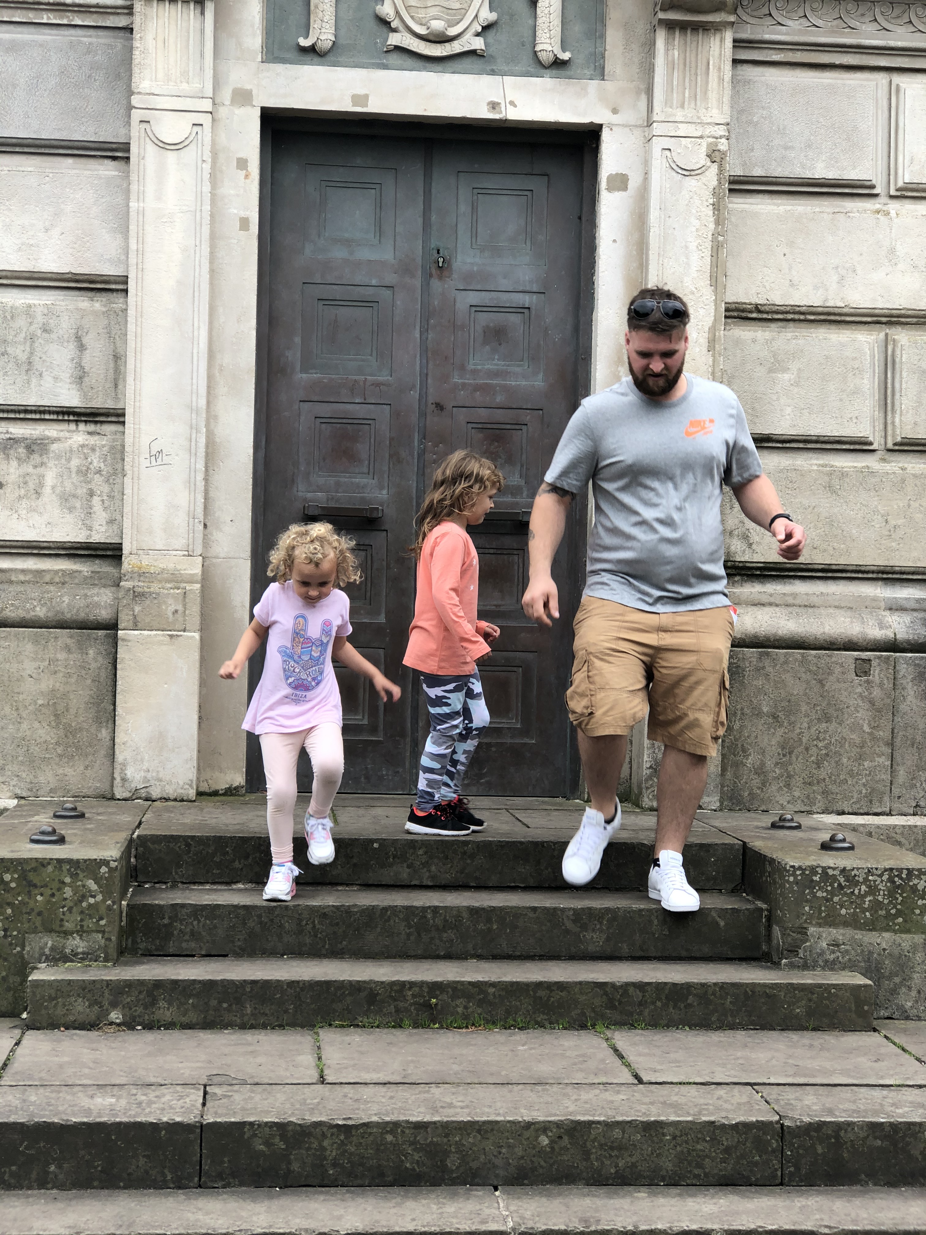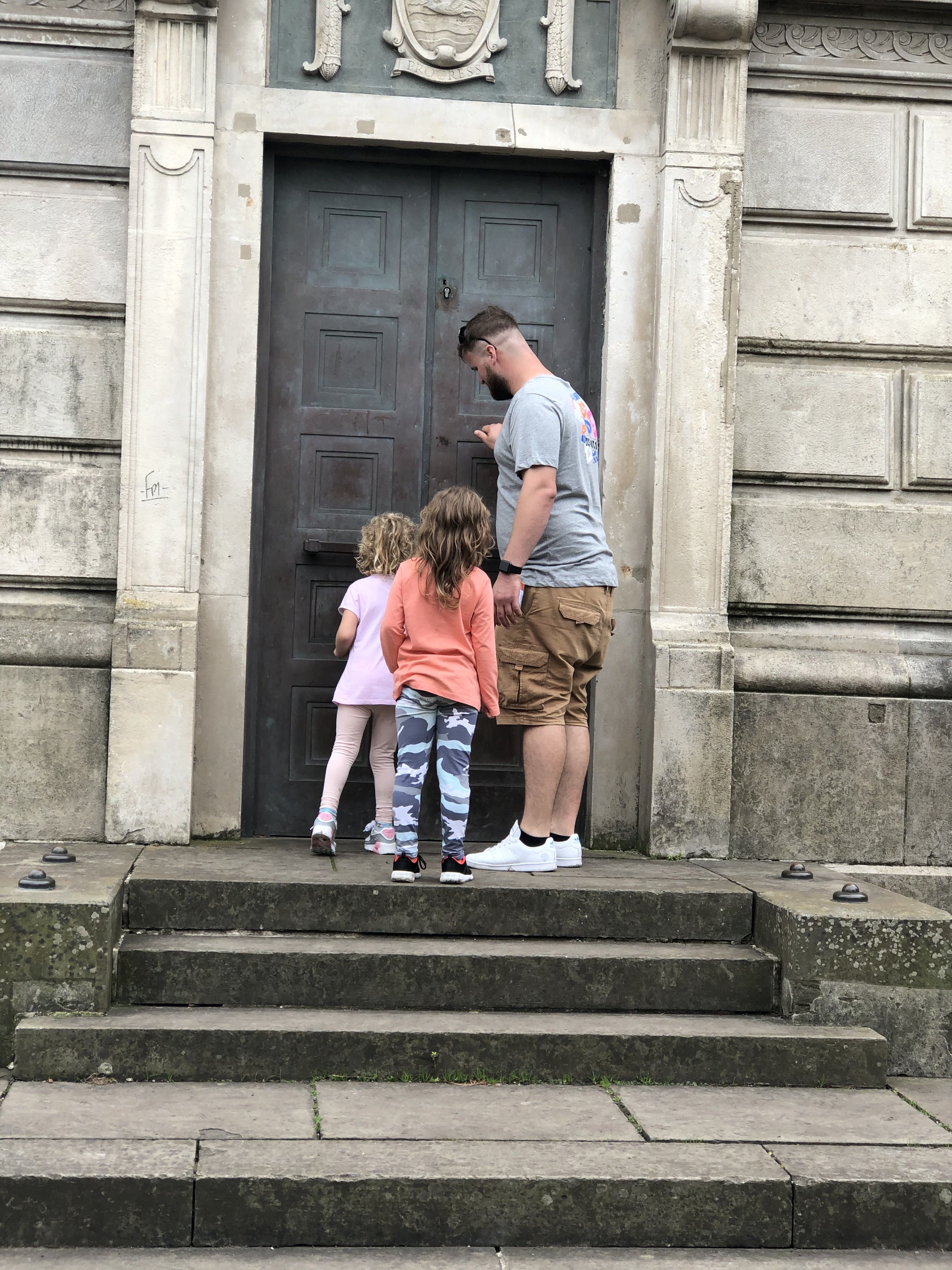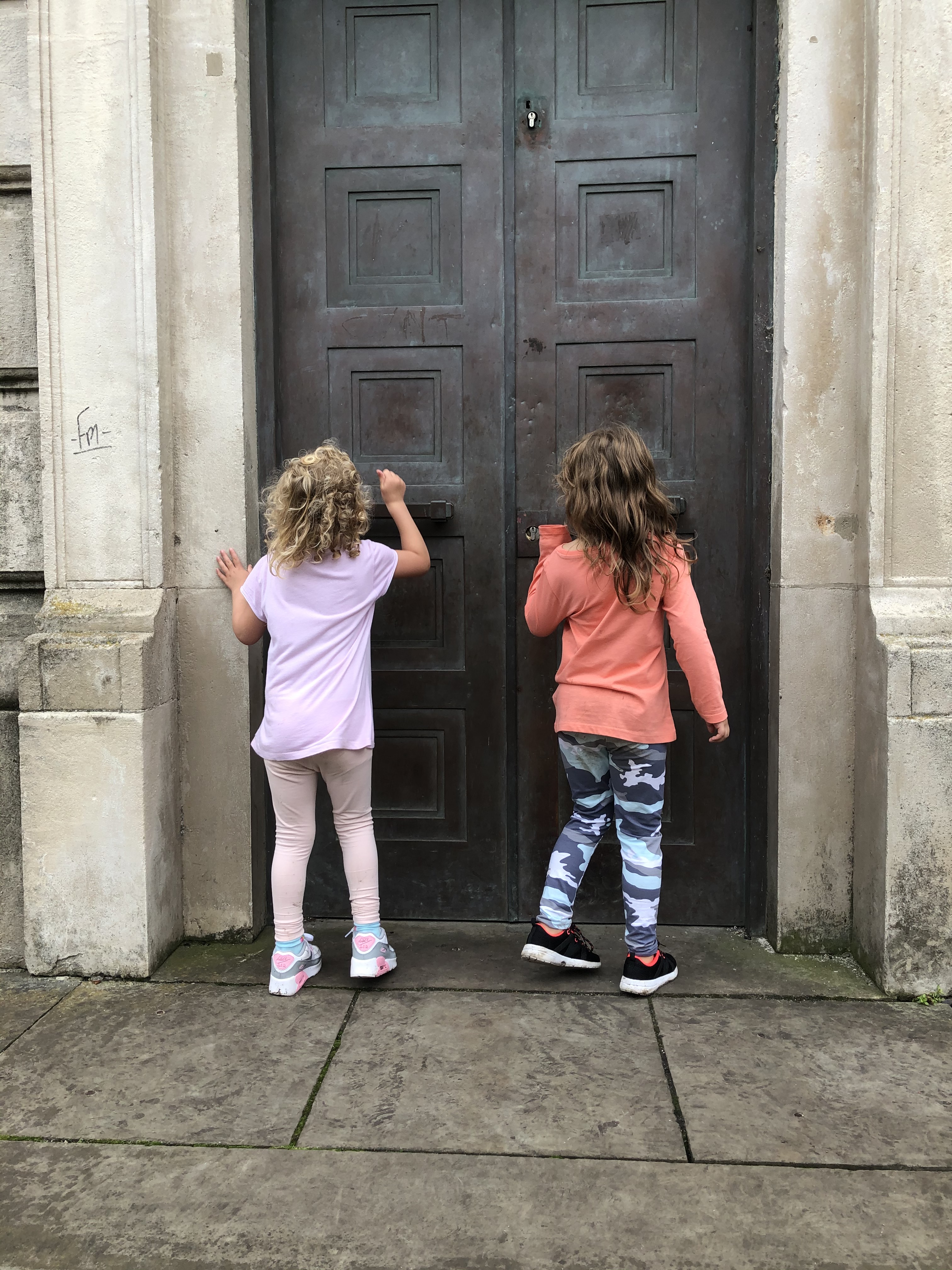 On the walk back to the car we encountered a doorway. We made up a story who may live there. Stuart, Alexandra and Grace knocked on the door – no answer, I shouted out the giant is coming…….. they about jumped out their skins.
