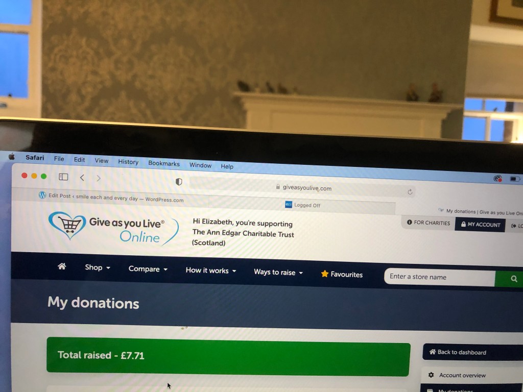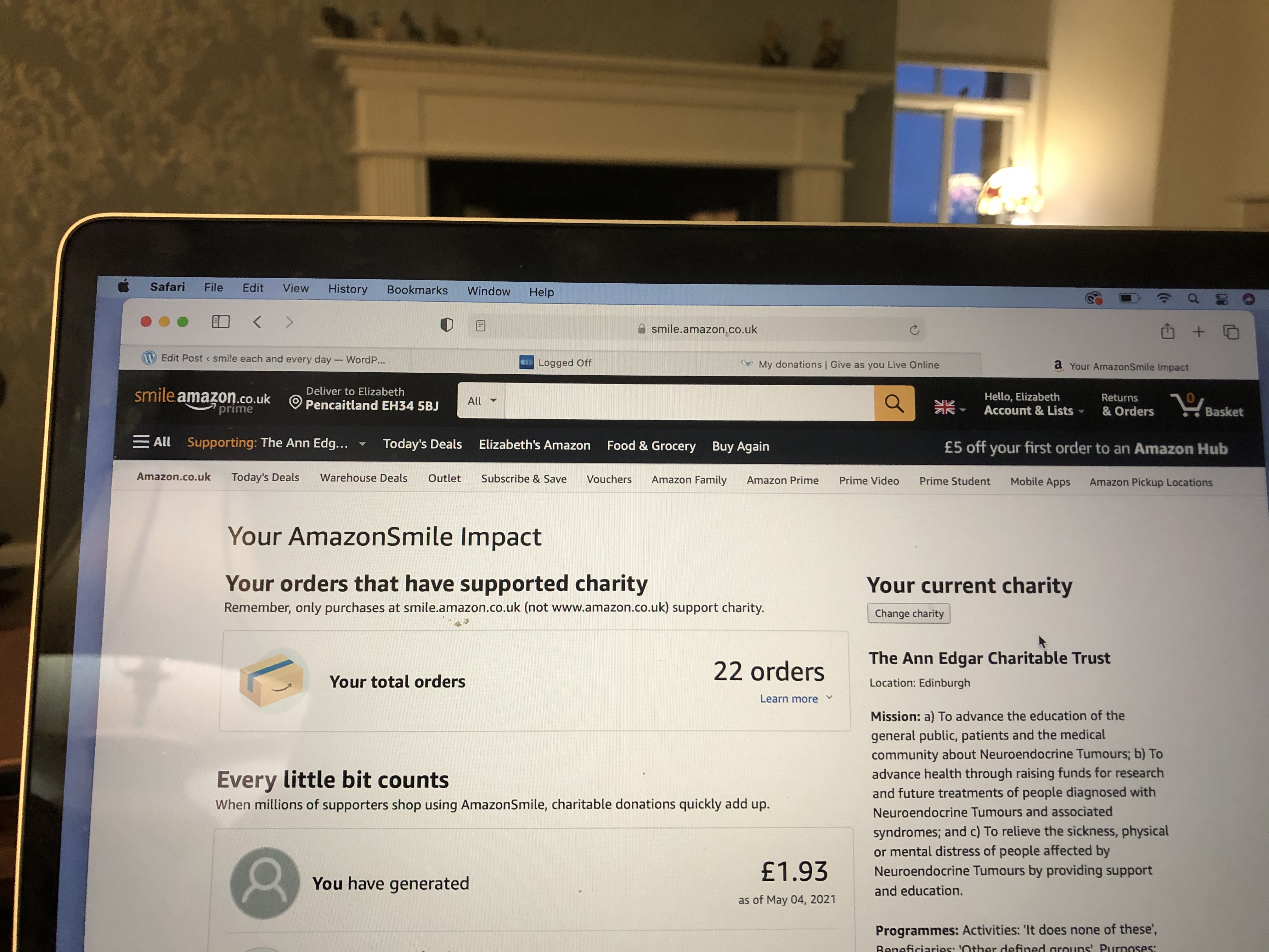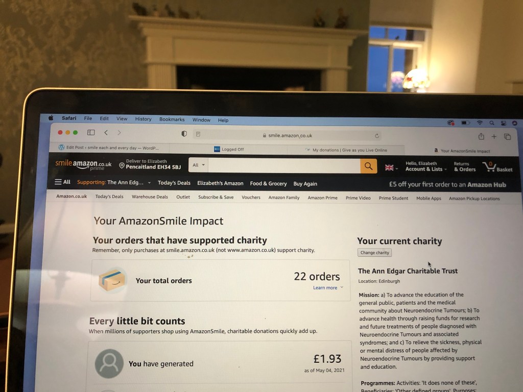 As most of my regular blog readers know I regularly attend Net natter support meetings with The Ann Edgar Charitable Trust. (TAECT) Scotland’s Neuroendocrine Cancer Charity. They are an invaluable support network as well as offer information days and zoom meetings. I got an email from TAECT letting me know that they had registered with Amazon Smile and Give as You Live.