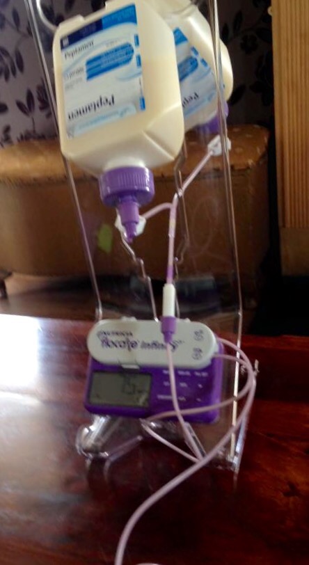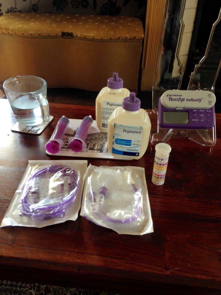 The nurse comes into our home on the morning we are heading down south. This is to check how I am and to do my dressings before heading off. My skin on my face, particularly where the tube had been resting has become agitated and red – some improvisation is needed: I’ve a cushioned dressing between the tube and my cheek now to prevent further damage. My nose where the plaster goes is getting red and a tad sore too. It’s all a little cumbersome but feels much more comfortable.