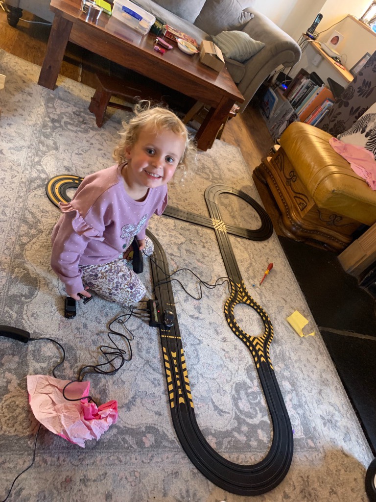 On entering the hotel I turned my phone off, no interruptions. However, at the coffee break I turned on my phone. A couple of messages. From each of my sons. Both checking up on their old folks and letting us know they are doing ok. One of the texts came with a photo of Granddaughter, Alexandra – she found her Daddy’s scalextric at our house and was loving playing with it. Knowing our boys were thinking of us warmed my heart.