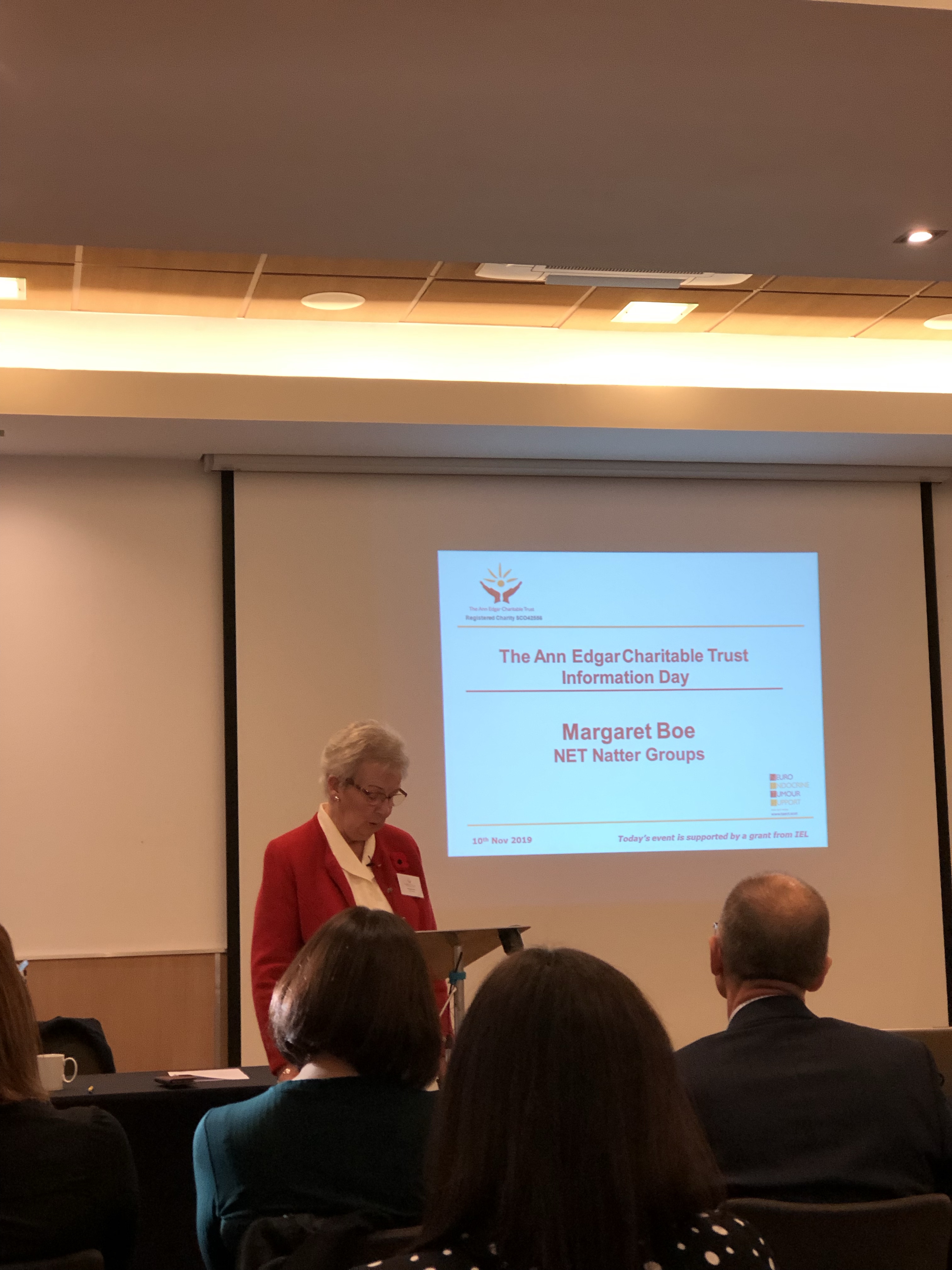 After being offered a beautiful buffet lunch, chance to meet other patients and folk interested in nets David Drummond, chairman and partner of the late Ann Edgar opened the show with a warm welcome. We were then given presentations from great speakers: