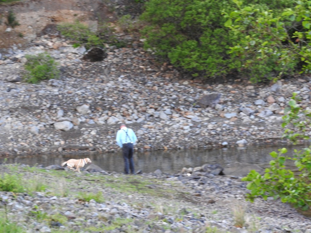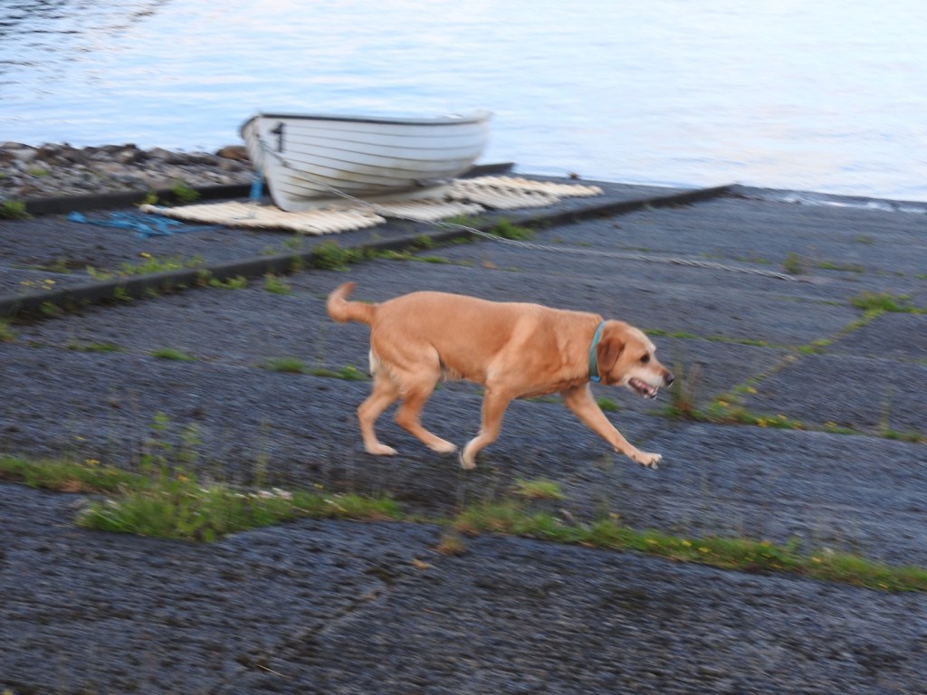 The dogs jumped out of the car as if they had never been out all day. Bella loved the water and paddling around, Buddy not so by this time in the evening he didn’t want to go in the water. Instead he was on a rabbit trail, nose to the ground and sniffing around and around very happily.
